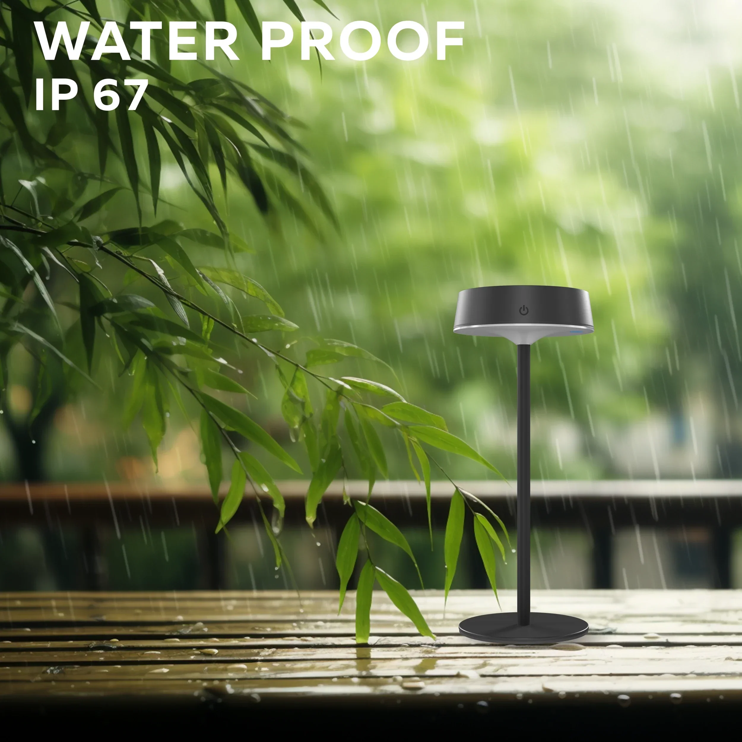 The sleek black design and compact size make this table lamp a stylish addition to any space. With a height of 38 cm and a diameter of 14 cm, it’s perfect as a decorative lamp in the living room, ambient lighting on the terrace, or a practical light source while camping.