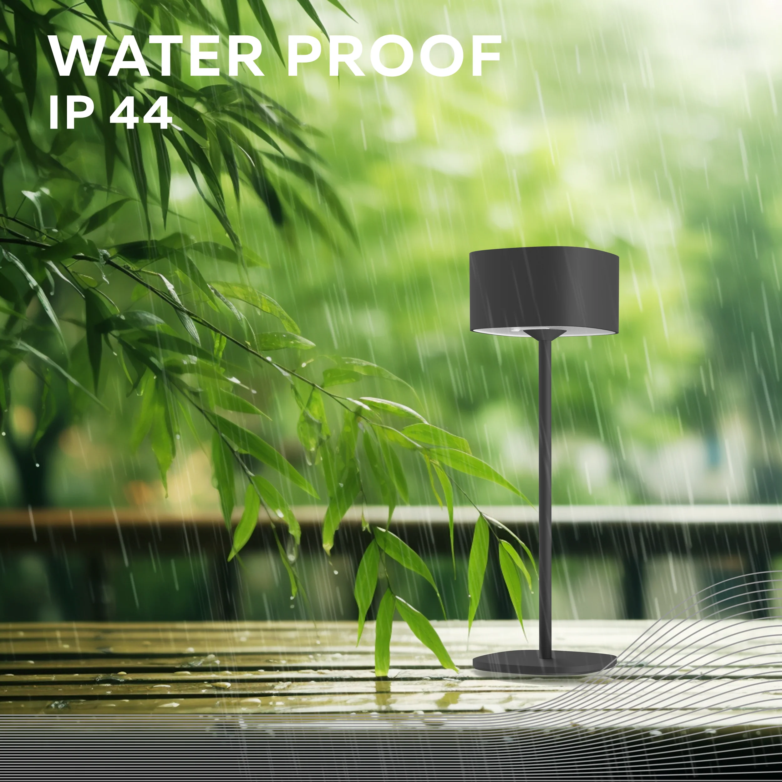 With its IP44 certification, this lamp is resistant to moisture and rain, making it safe to use on terraces, balconies, or during camping trips. The sturdy casing and high-quality finish ensure a long lifespan.Stable & Compact Design